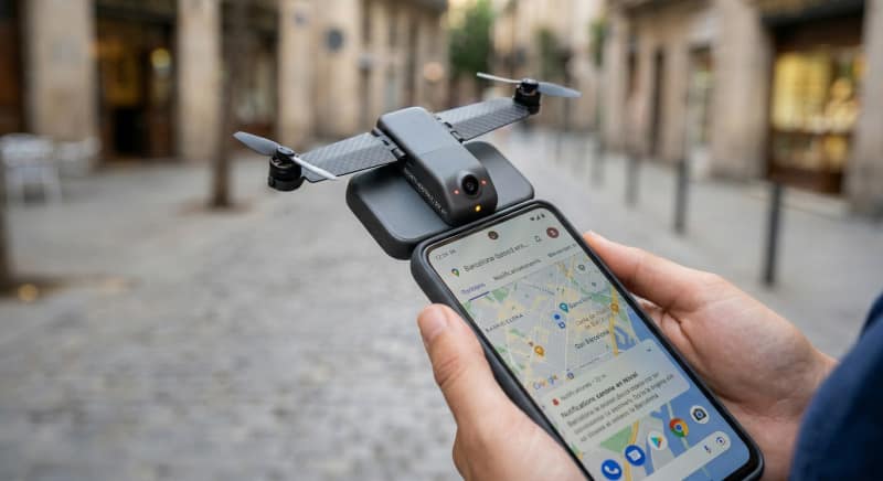 Un dispositivo que permite tener el móvil orbitando cerca de tí para no olvidarlo en cualquier parte con reconocimiento facial de seguridad, de voz, de tacto,... si no eres su dueño grita y se eleva fuera del alcance de las manos de cualquier persona y vuelve a ti cuando le llamas. En caso de emergencia graba lo que y escucha y llama a los servicios de ayuda.